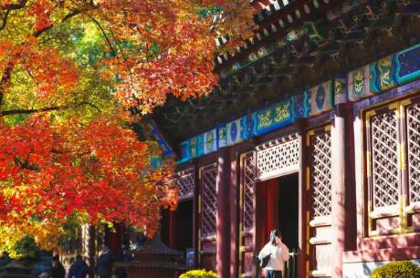 - 勤政殿:作为公园的标志性建筑、静宜园二十八景之首,勤政殿殿前栽植“消息树”元宝枫已进入变色中期。橙红的叶片与皇家殿宇彩画、香炉、窗棂相映成趣,尽显古韵秋华,是拍摄建筑与红叶完美结合的经典机位。