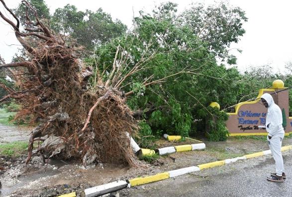这是10月28日在牙买加圣凯瑟琳拍摄的被飓风“梅莉萨”连根拔起的大树。新华社/法新